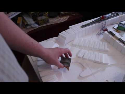 Working on adding tunnels and started building the foam terrain. Also see the first results of using foam putty filler material. The layout is 27x48 inch in N Scale.